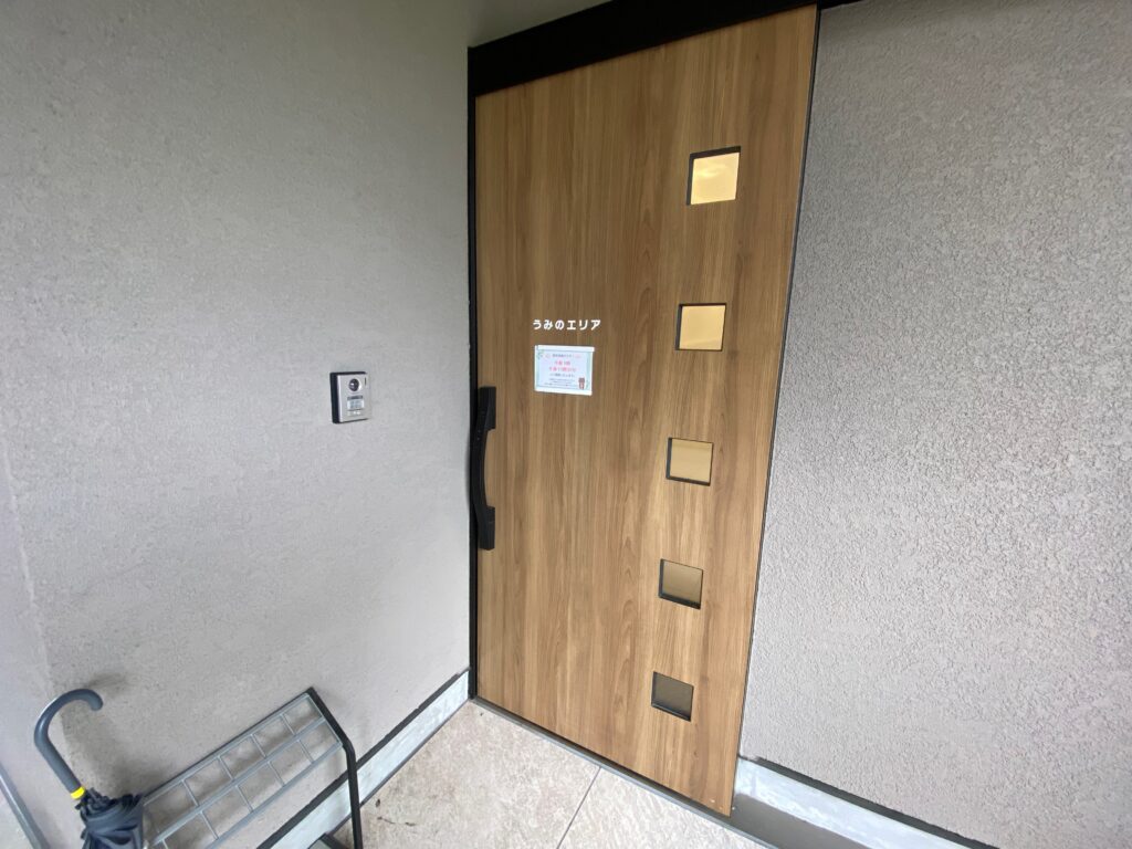 通路をまっすぐ進んでいただきますと、左手に『うみのエリア』と書かれた木の扉がございます。