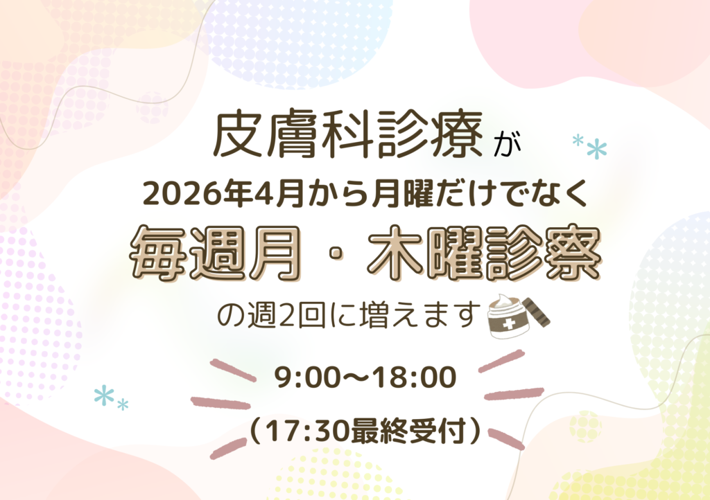 皮膚科〈木曜日診療〉追加のお知らせ📢✨