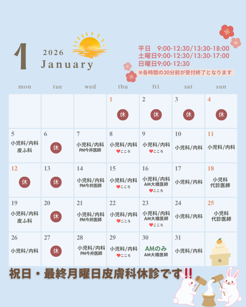 2026年1月の診療スケジュールについてのお知らせです✨