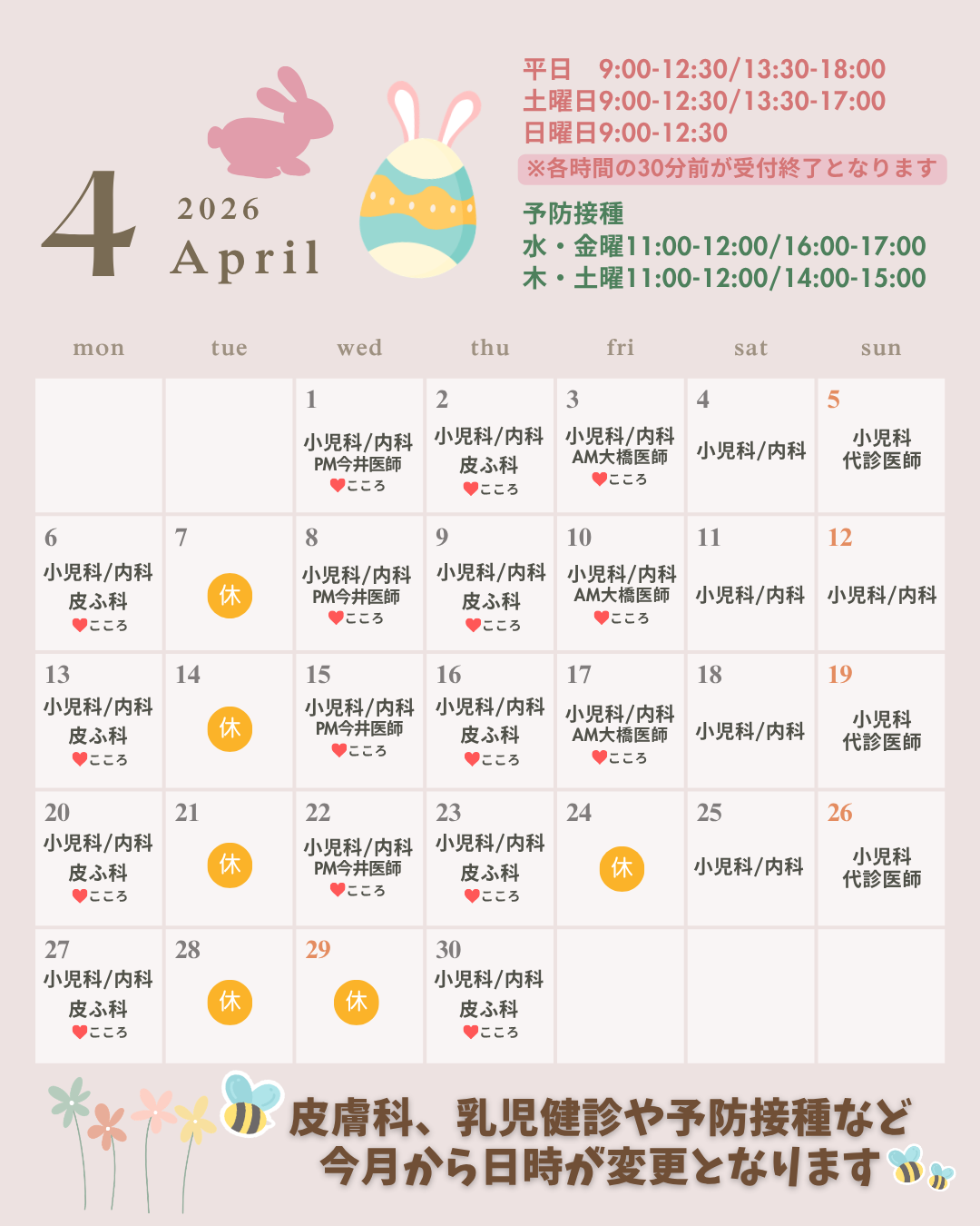 💉4月からの予防接種時間についてはこちらをご覧ください↓
